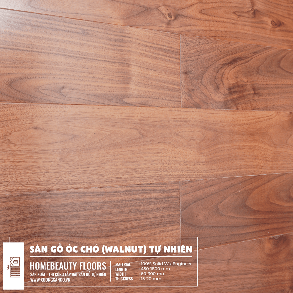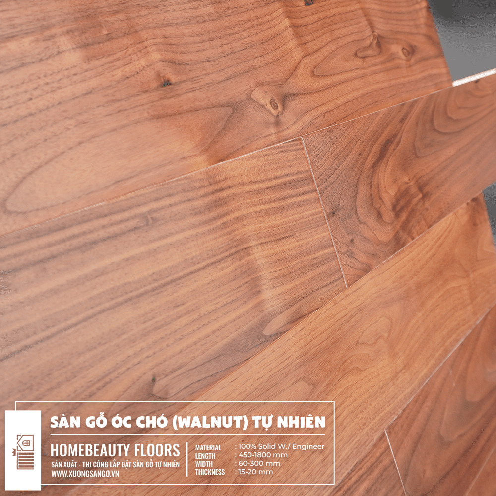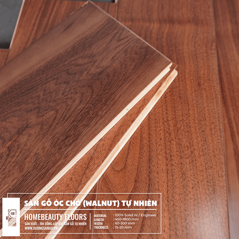Sàn Gỗ Óc Chó (Walnut) là dòng sản phẩm cao cấp được ưa chuộng trong nhiều công trình biệt thự, khách sạn và khu nghỉ dưỡng nhờ vào vẻ đẹp sang trọng, vân gỗ độc đáo cùng độ bền vượt trội. Được nhập khẩu trực tiếp từ Bắc Mỹ, gỗ Óc Chó có màu sắc nâu sẫm đặc trưng, dát gỗ màu kem, kết hợp cùng vân xoáy mềm mại, tạo nên nét đẹp quý phái không thể nhầm lẫn.